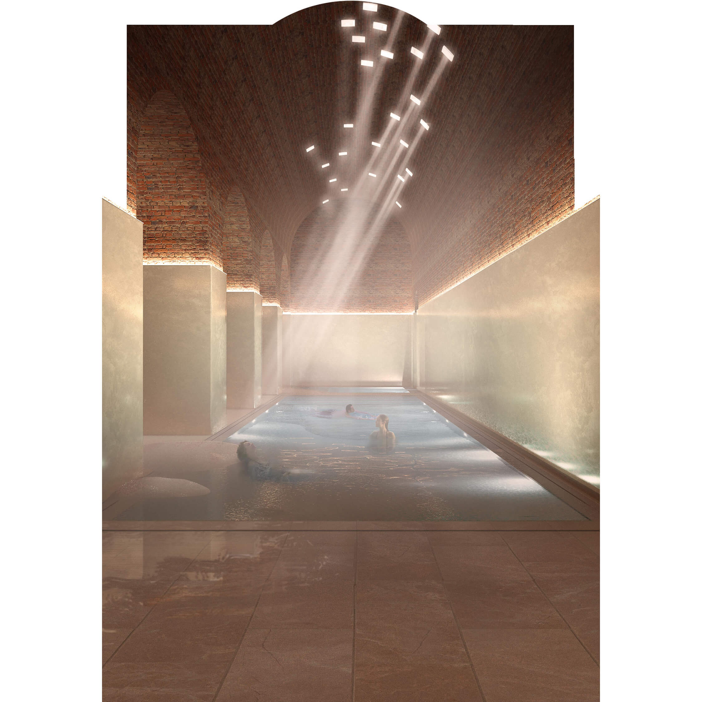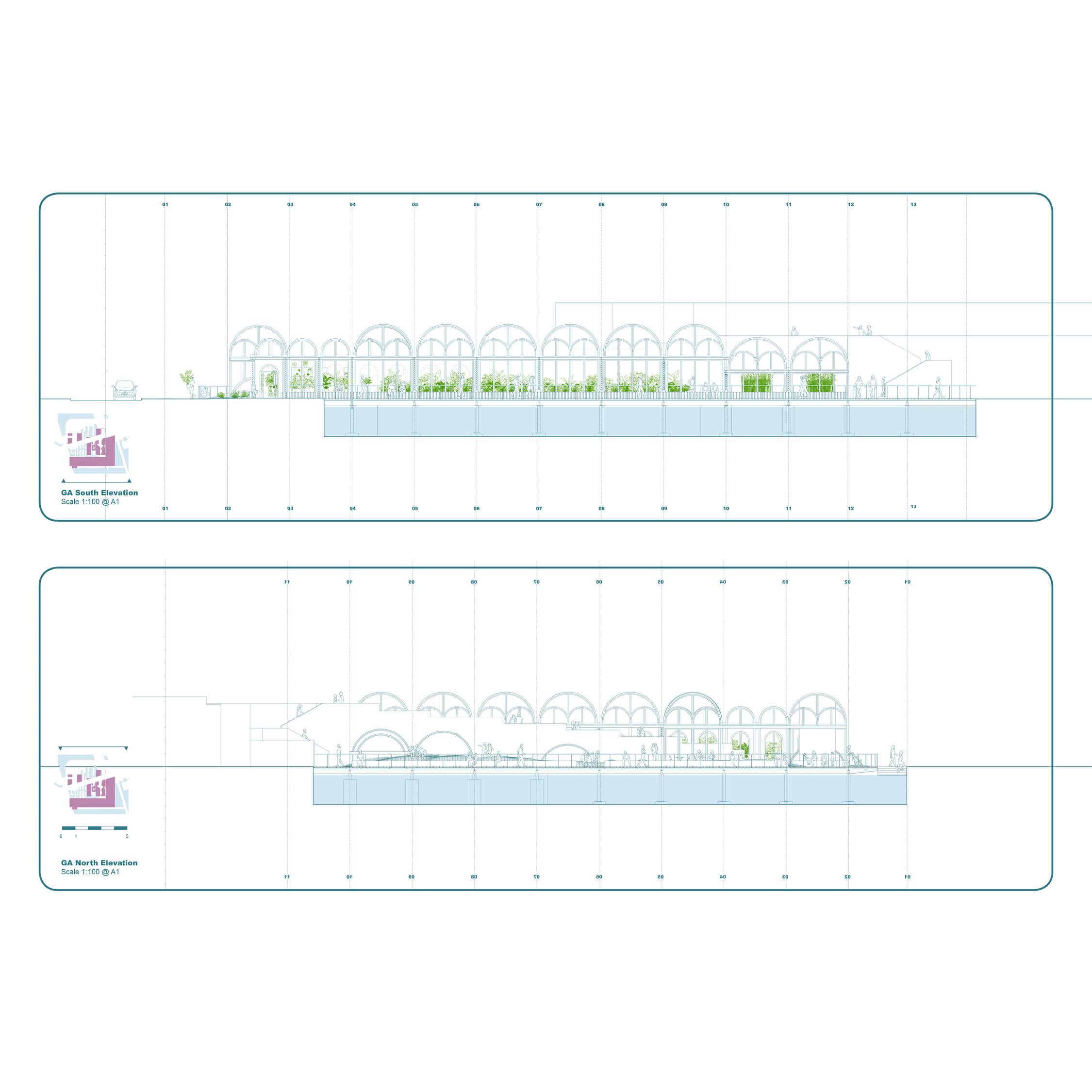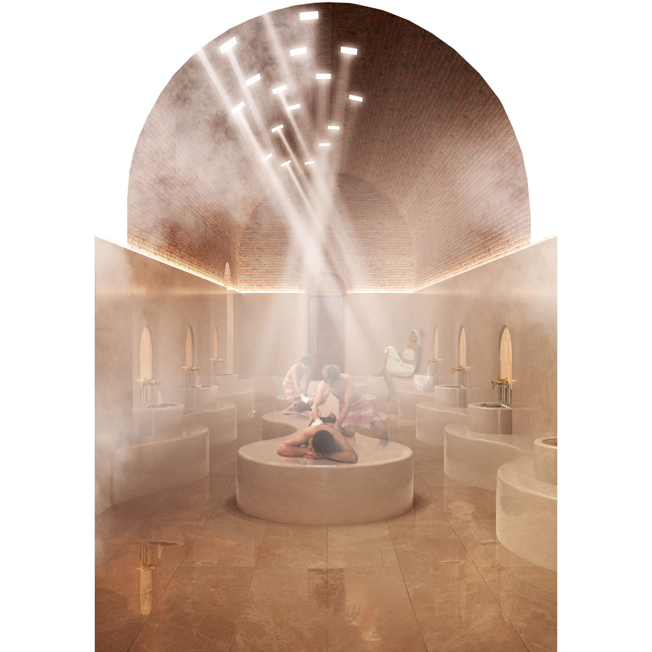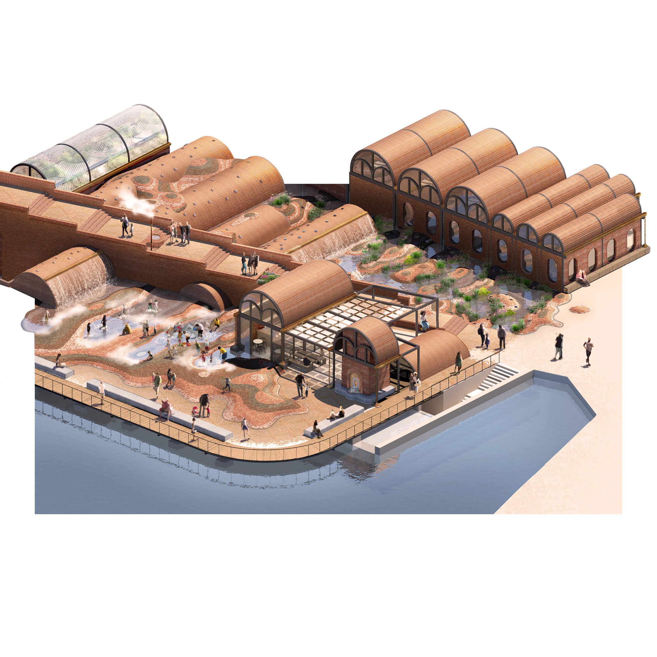 Located in London, South East of Alexandra Park and partially submerged into the landscape of the redundant filter bedsat Hornsey Water Treatment Works. The building proposal forms part of a wider masterplan for a community centredaround sustainable water use and awareness. An underground thermal spa forms the heart of the proposal, providing aspace that promotes health, well-being and positive relationships to water. All of the grey water produced by the spa isprocessed and reused on site, using a living, non-chemical, wastewater treatment system that creates a closedhydrological loop with the adjacent water works.