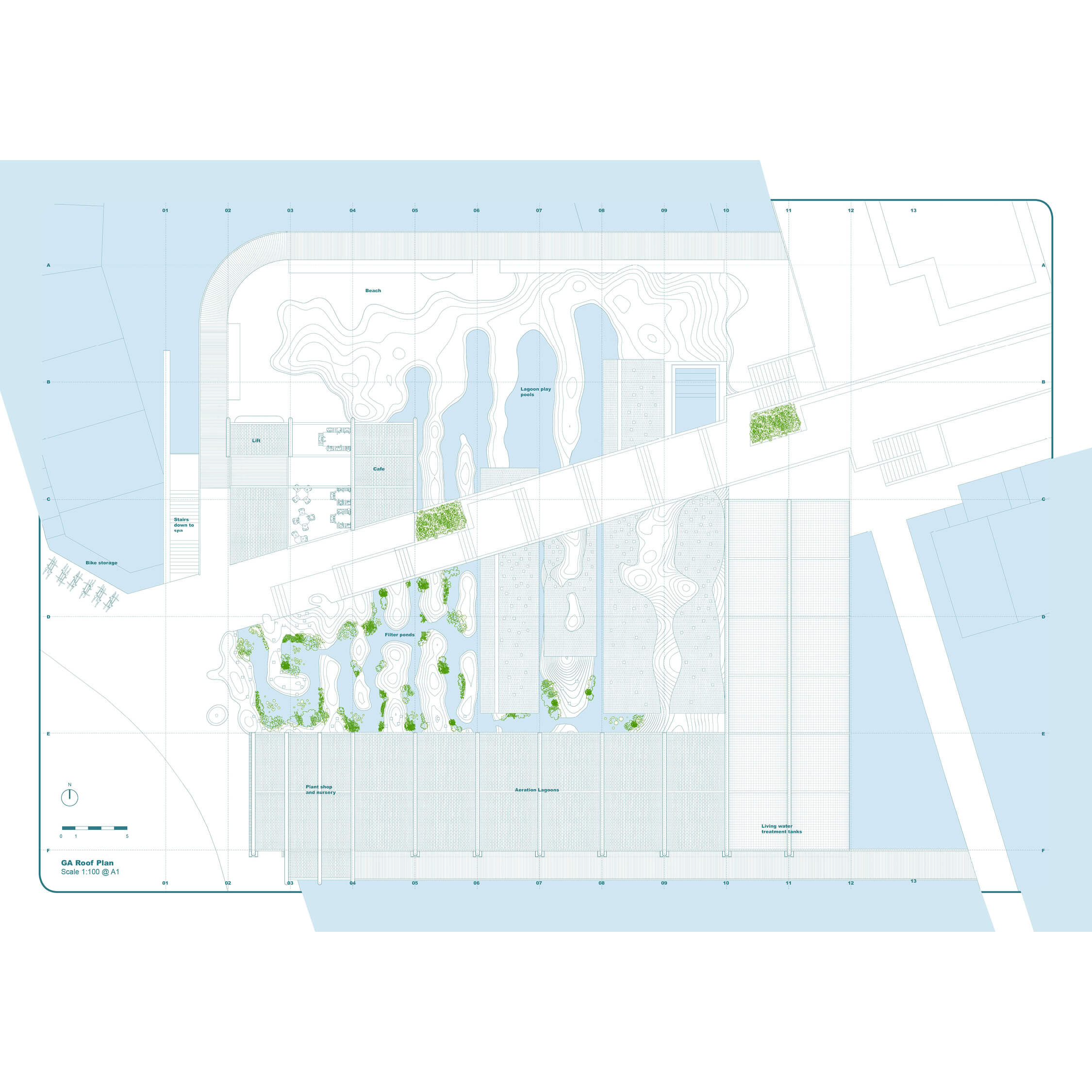 Blending landscape, infrastructure, building and hydrological processes, the scheme aims to reposition public opinion ofwastewater treatment by inserting it into the core of a public space and allowing people to experience the regenerativeproperties of treated water.